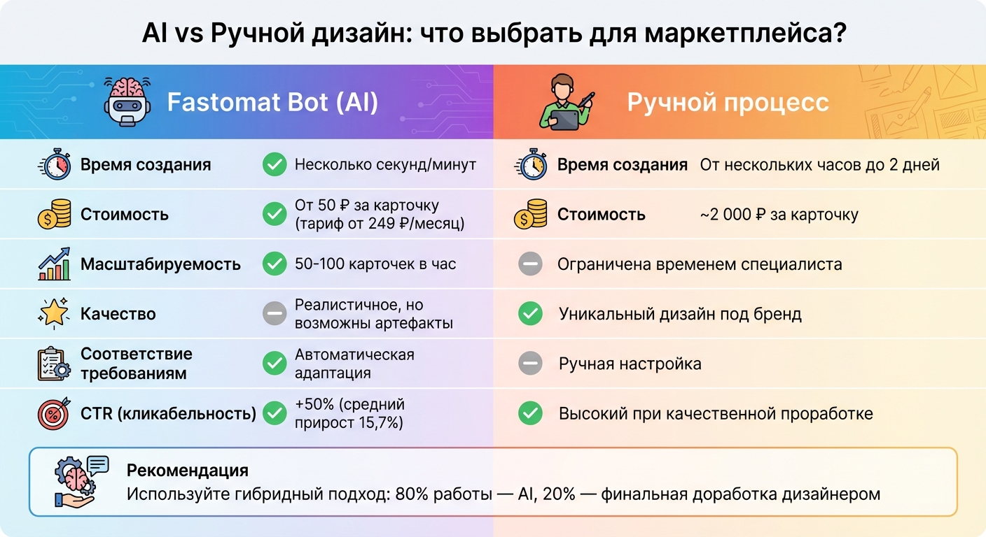 AI vs ручной дизайн для маркетплейсов: сравнение скорости, стоимости и эффективности