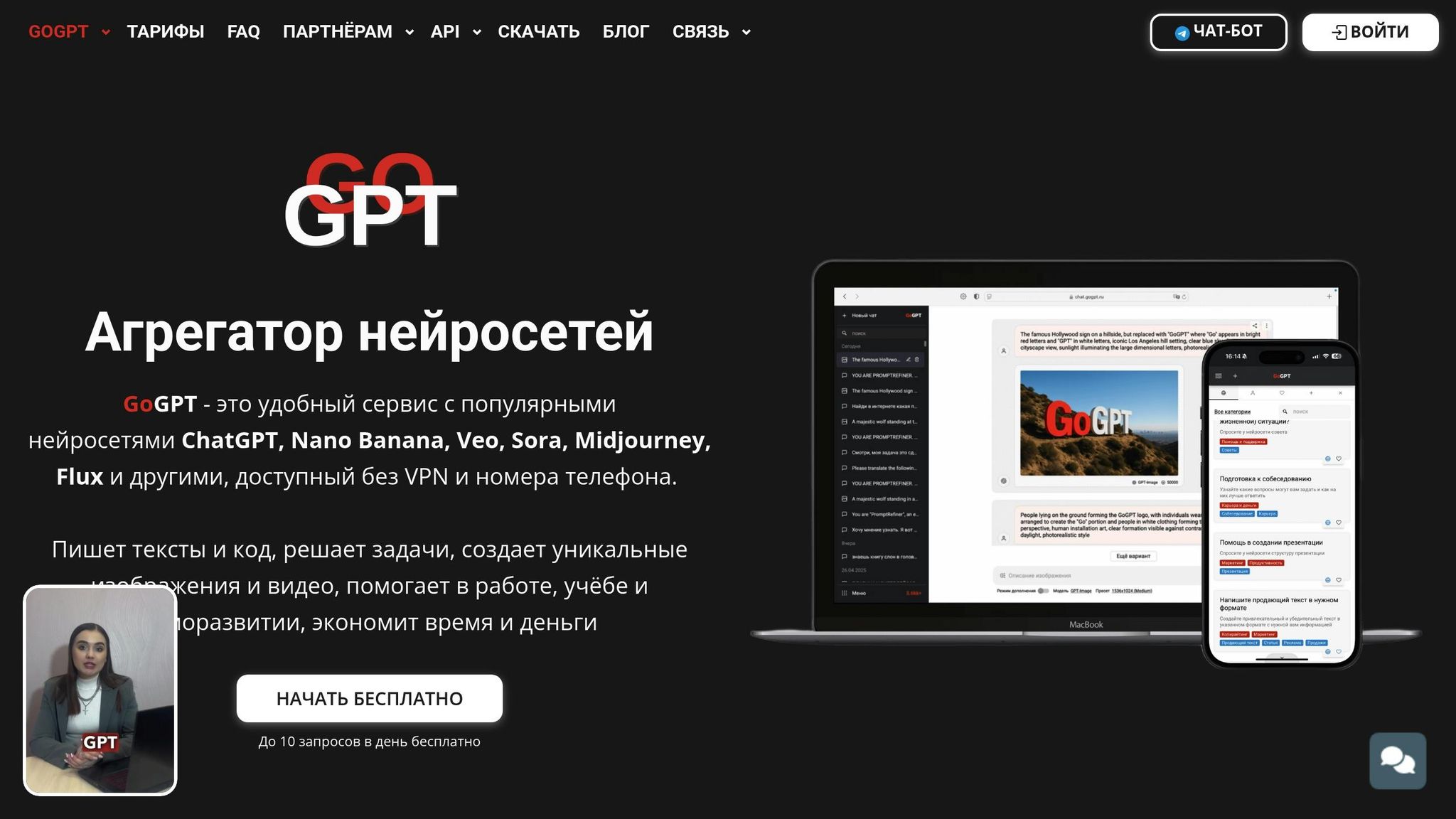 GoGPT - это платформа-агрегатор, которая объединяет различные популярные AI-модели в одном интерфейсе. Она позволяет сохранять контекст диалога при переключении между моделями, что значительно упрощает процесс создания товарных карточек. С помощью GoGPT продавцы могут полностью пройти цикл создания карточек, включая заголовки, описания, слоганы и даже промпты для изображений галереи. Всё это помогает быстро запускать и корректировать контент для Wildberries.